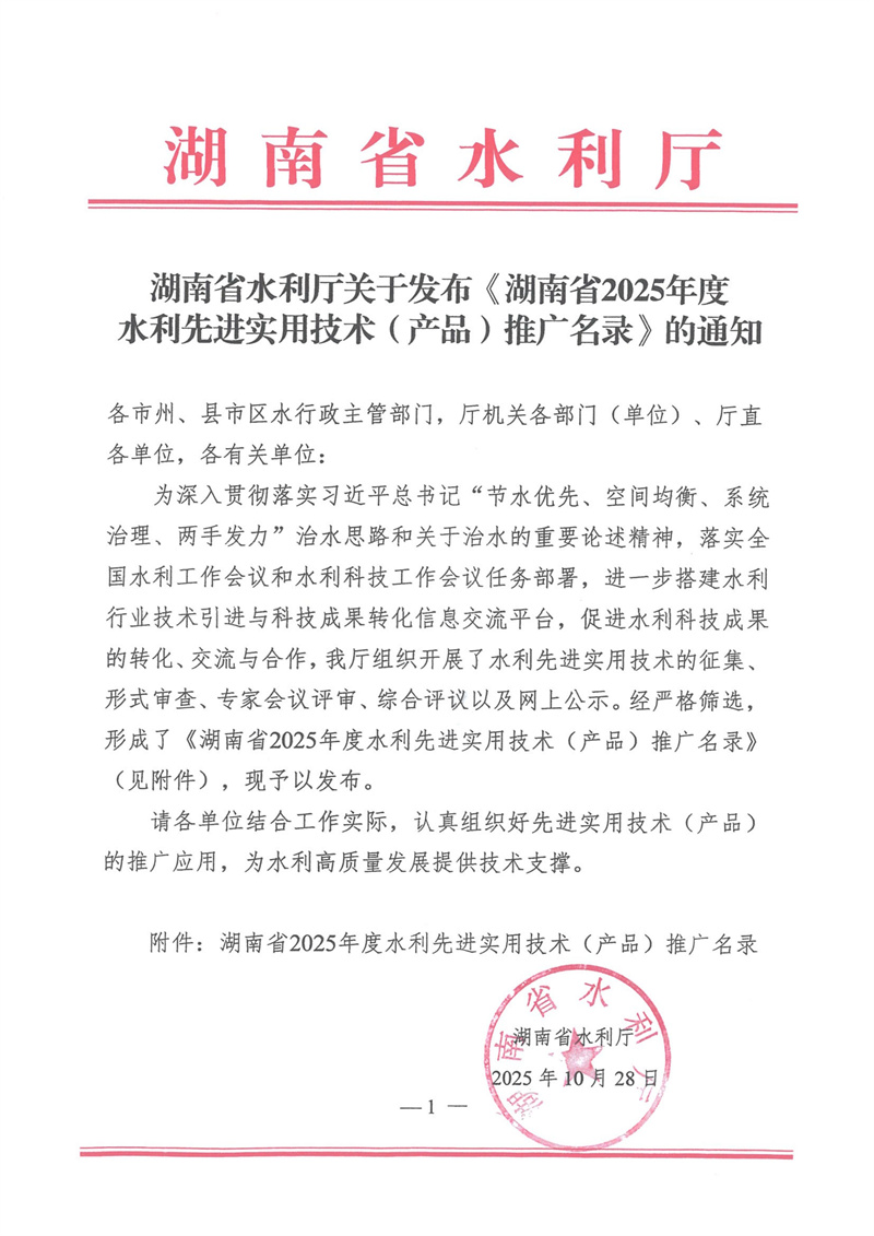 本次推介会同步发布了《湖南省2025年度水利先进实用技术(产品)推广名录》,经严格筛选与评审,中水三立自主研发的智慧灌区管理平台,凭借先进性、实用性和推广价值成功上榜,获得省级水利主管部门及行业专家的权威认可。